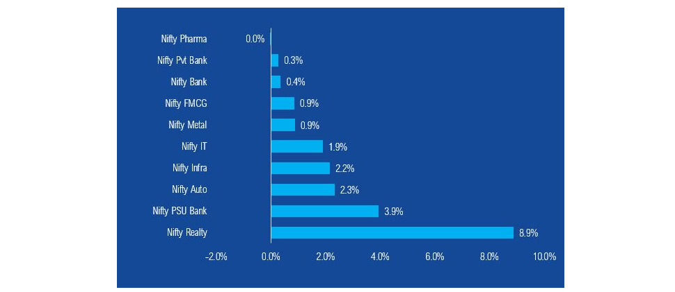 While most sectors rallied in line with the broader market, realty index outperformed benchmarks amid good earnings releases, strong sale numbers and more recovery in demand expected.